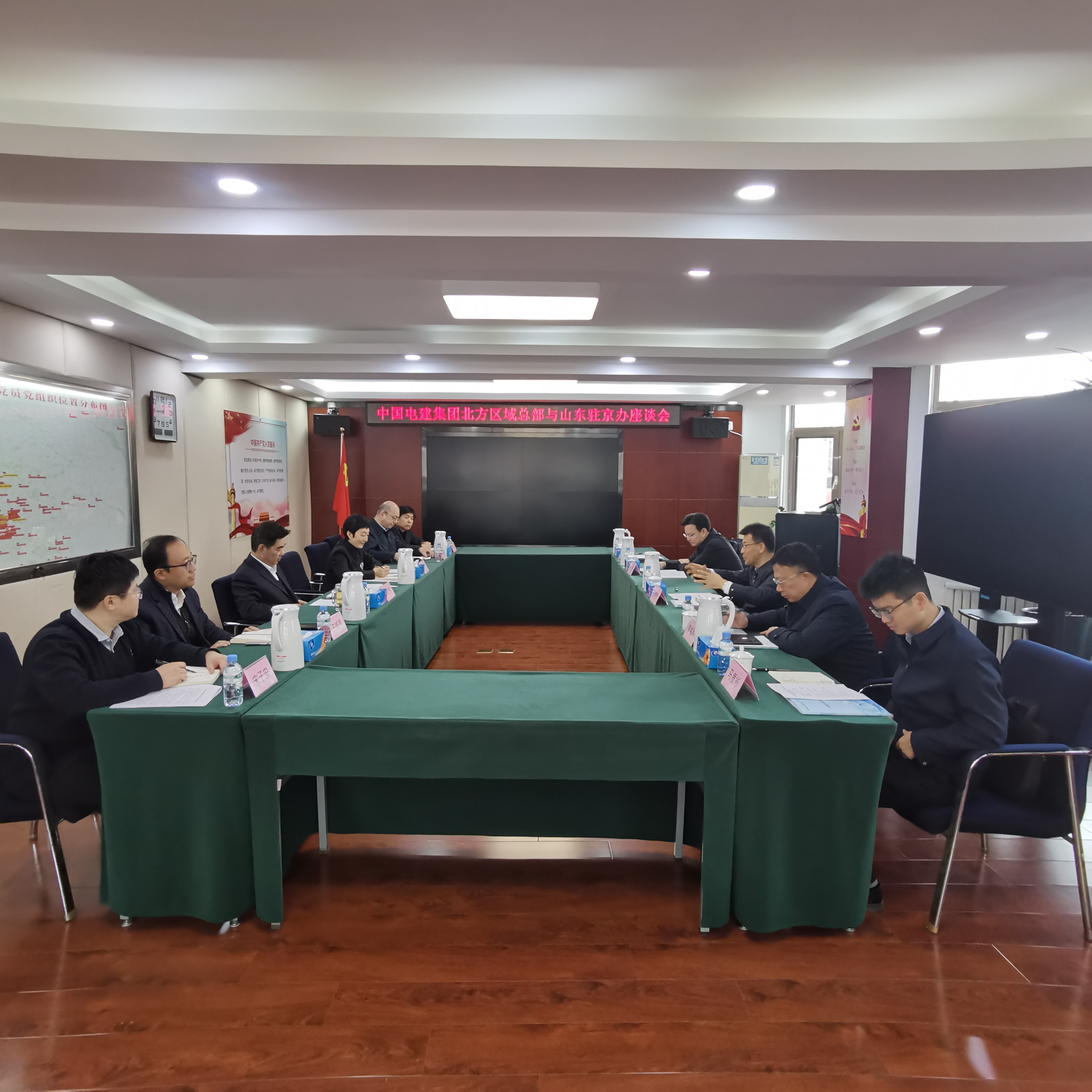 2月6日,北方区域总部党委书记、总经理/北方投资公司党委书记、董事长康建民与山东省政府驻京办党委书记、主任兼省委在京机构人员工委书记苑衍刚举行座谈。双方围绕深化央地协同、拓展合作领域、推进重点项目落地等方面进行深入交流。 康建民对山东省政府驻京办搭建京鲁合作桥梁,助力地方高质量发展的成效表示赞赏。他简要介绍了中国电建的改革发展情况,从“水、能、城、数”四大板块介绍了中国电建的多业态分布和投建营一体化优势。他表示,山东省是经济强省和工业强省,中国电建“十四五”期间在鲁新签超3500亿元,“十五五”期间十分重视山东省的投资建设机遇,目前已成立覆盖省内各地市的市域工作组,将积极发挥中国电建自身规划设计引领和全产业链一体化优势,为山东省及各地市“十五五”规划建设贡献电建智慧和电建方案。 苑衍刚对康建民一行的到访表示热烈欢迎,对中国电建长期以来给予山东发展的支持表示感谢。他表示,山东省驻京办作为山东省委、省政府在北京的平台,主要负责落实省委、省政府关于加强区域间经济合作和政务联络工作要求,积极打造京鲁融通中心、央地合作桥梁。中国电建近年来在投资建设、带动就业等方面为山东省作出了重要贡献,希望以此次座谈为契机,建立长效沟通机制,充分发挥驻京办桥梁纽带作用,推进央地共赢发展,在各个领域实现更广范围、更深层次的合作。 山东省驻京办党委委员、副主任徐宁,北方区域总部/投资公司副总经理李福军、总经理助理白鹏,相关部门负责人参加座谈。 | ||
