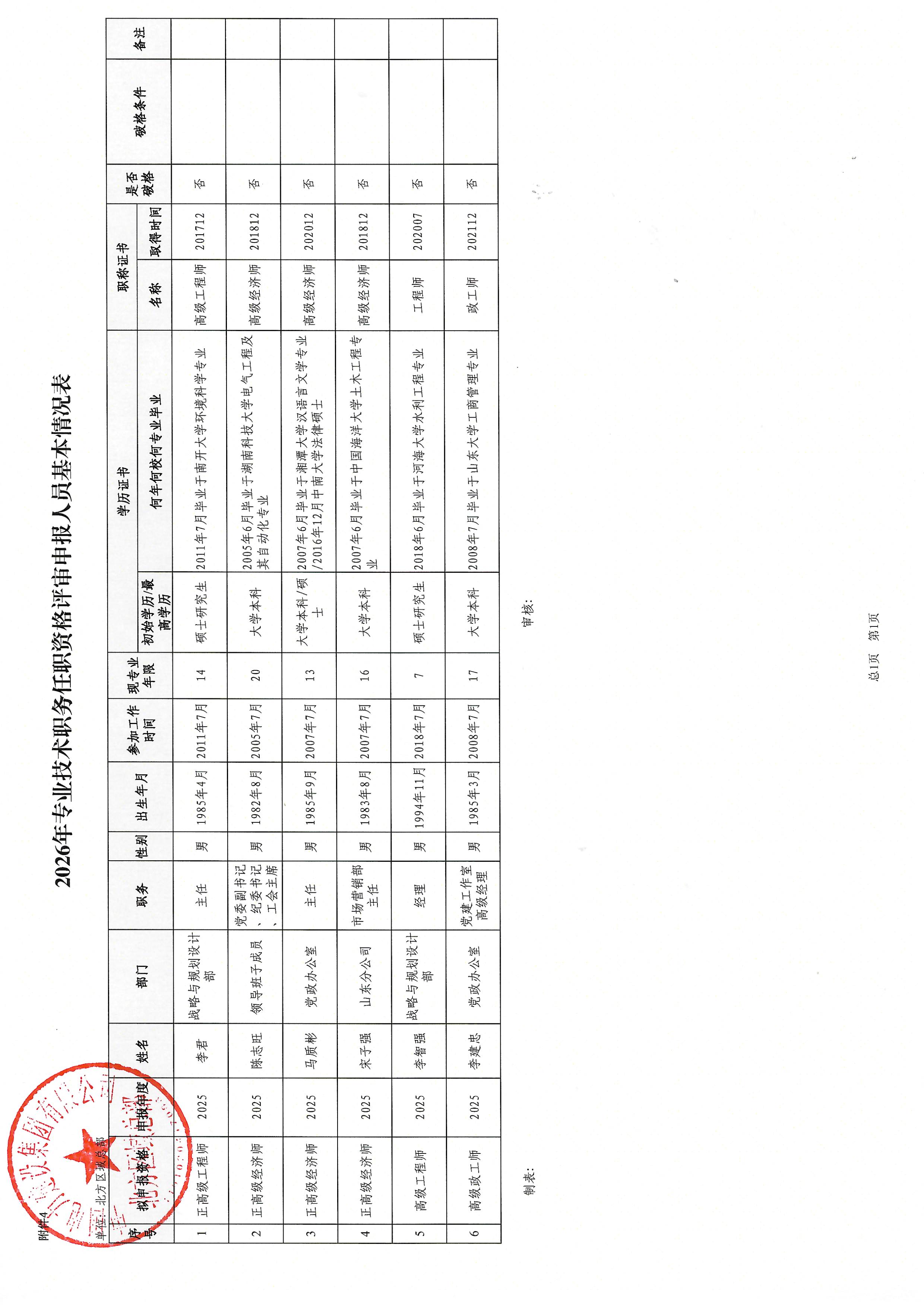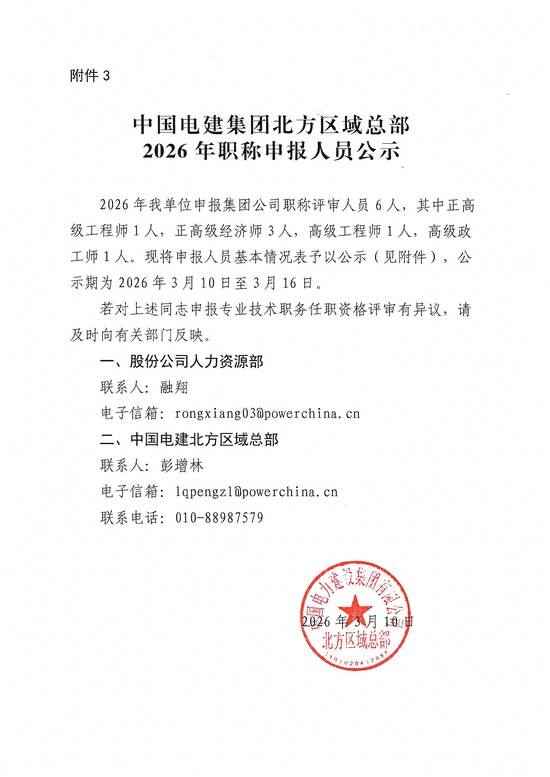 中国电建集团北方区域总部2026年职称申报人员公示