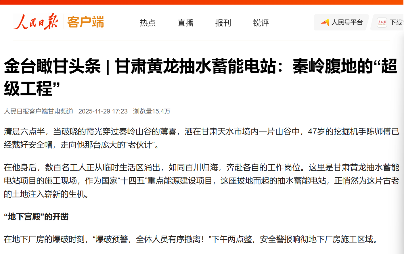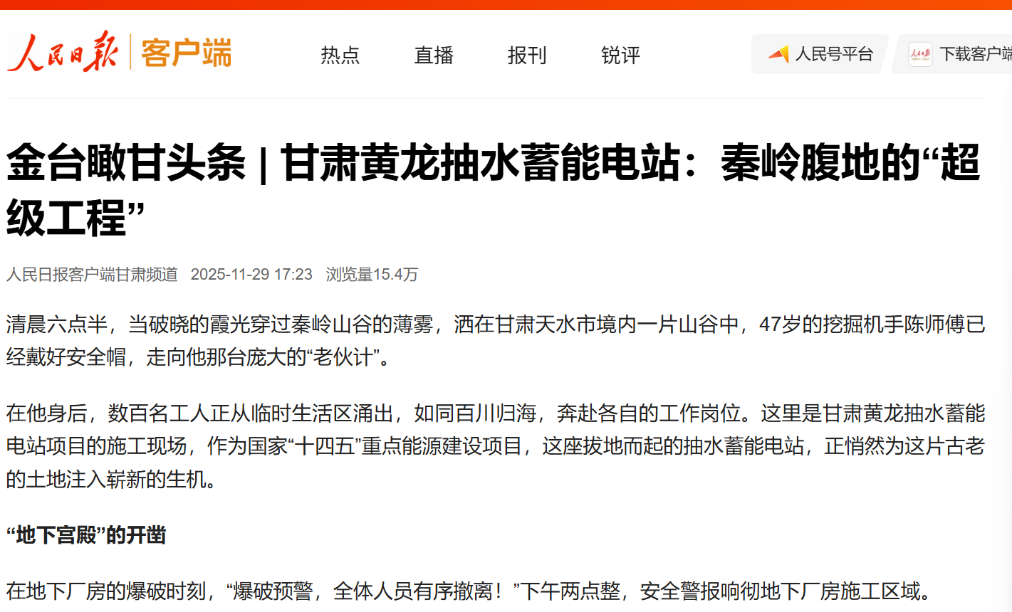 人民日报客户端:甘肃黄龙抽水蓄能电站:秦岭腹地的“超级工程” | ||