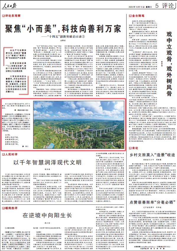近日,《人民日报》第五版报道了水电十四局承建的四川亭子口灌区一期工程桐子坝渡槽建设情况。 报道写到,我国是世界上水情最复杂、江河治理难度最大、治水任务最繁重的国家之一。截至2024年底,我国建成水库9.5万座、大中型调水工程200项,大中型灌区6924处、堤防31.8万公里,形成了世界上规模最大、功能最全、惠及人口最多的水利基础设施体系。水利发展取得新成效,为保障防洪安全、供水安全、粮食安全、生态安全作出了新贡献。 据了解,作为亭子口灌区一期工程第八流量段的“关键节点”,桐子坝渡槽的建设规模与技术难度均处于项目前列。工程采用预应力简支U型结构,设计流量达51.25立方米/秒,单跨长度42米,总计45跨的建设规模让渡槽全长达到1890米,其中槽墩墩身最大架空高度更是突破90米,相当于30层楼高,施工精度与安全管控要求极高。 当前,项目已全面进入槽墩与槽身上部结构施工的“攻坚期”。 报道链接:http://paper.people.com.cn/rmrb/pc/content/202510/15/content_30109580.html | ||